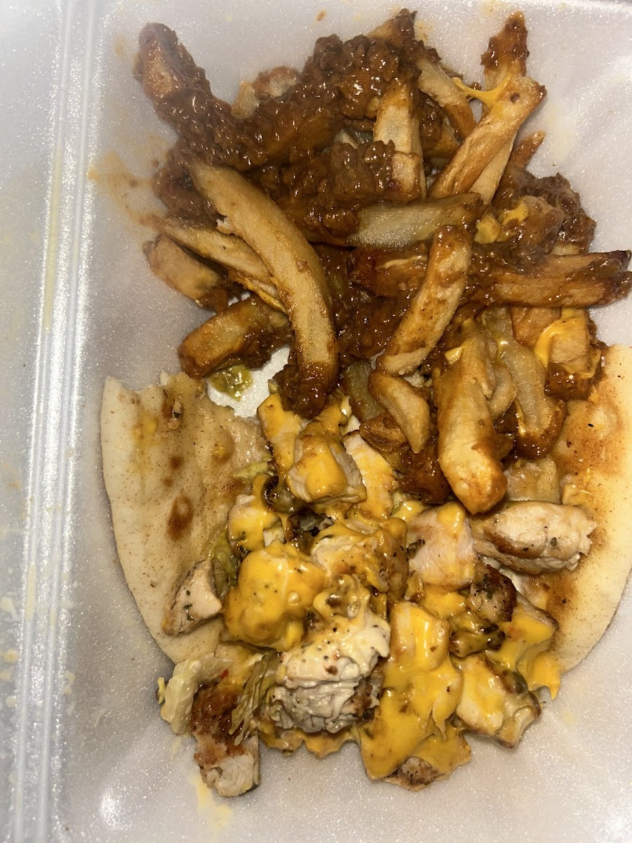 At 3 o’clock in the morning, I got twice cooked extra crunchy extra chewy fries with a grilled chicken pita took two pictures for your enjoyment